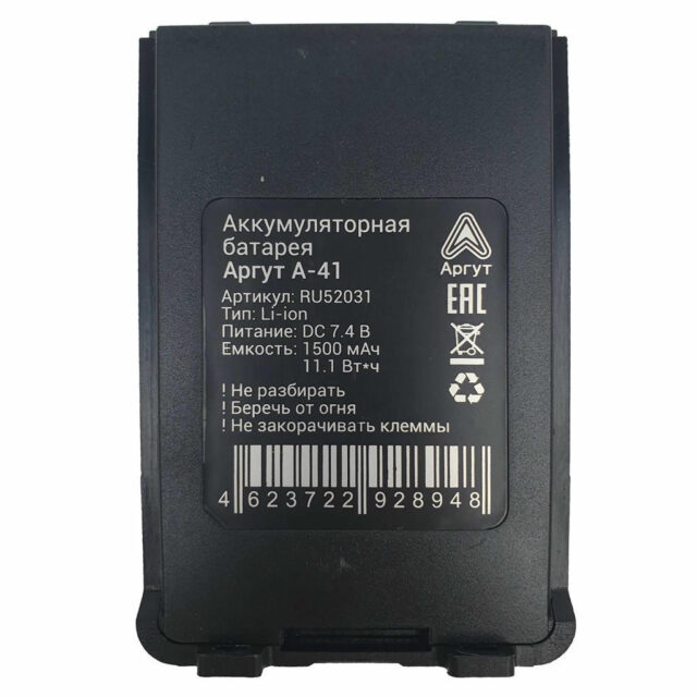 Компактный Li-Pol аккумулятор для раций Аргут. Емкость 1500 мАч обеспечивает стабильную работу в различных условиях эксплуатации.