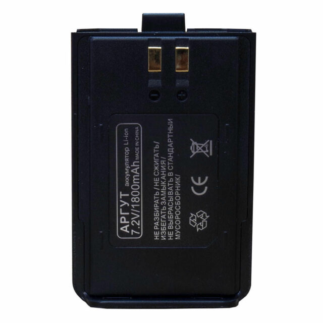 Современный Li-Pol аккумулятор для раций Аргут. Емкость 1800 мАч обеспечивает длительную работу в различных условиях эксплуатации.