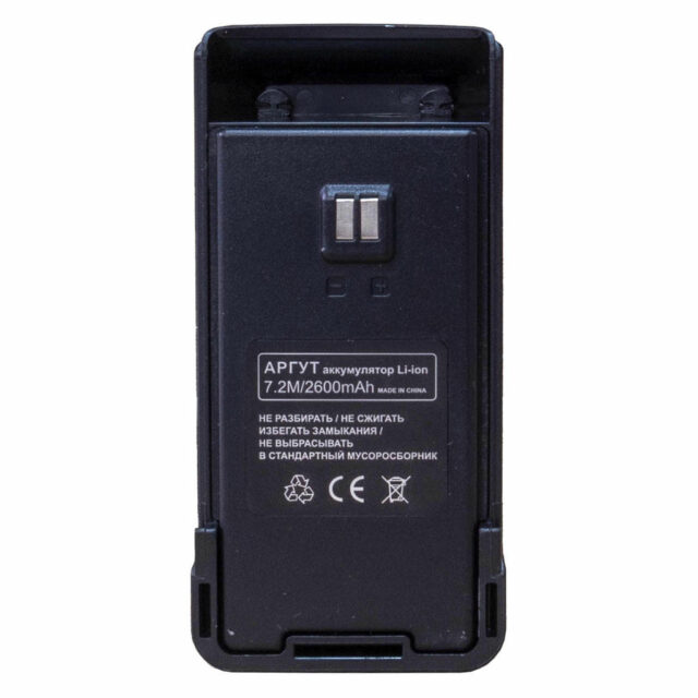 Мощный Li-Ion аккумулятор для раций Аргут. Емкость 2600 мАч обеспечивает длительную работу в различных условиях эксплуатации.