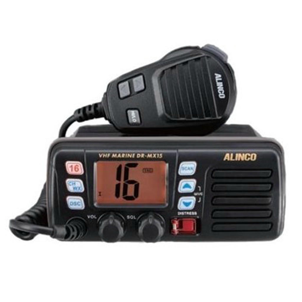 ALINCO DR-MX15 — стационарная (бортовая) морская радиостанция, работающая в диапазоне VHF морской подвижной службы: TX 156,025–157,424 МГц, RX 156,050–163,275 МГц. Мощность передатчика 25 Вт обеспечивает дальность связи до 20–25 морских миль при прямой видимости и уверенный приём береговых радиостанций при работе с судовой антенной. 22 фиксированных международных канала, включая аварийный канал 16, соответствуют требованиям ГМСС к бортовому радиооборудованию малых судов.