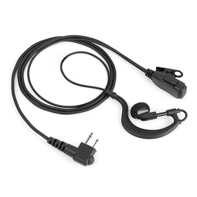 Конструктивные особенности включают лёгкое заушное крепление, встроенный микрофон с кнопкой PTT, клипсу для фиксации кабеля на одежде.