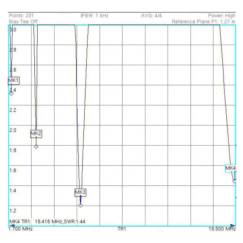 Траповая КВ антенна RCWL-160-1000 характеризуется коэффициентом стоячей волны не более 2:1 в рабочих диапазонах частот и максимальной мощностью 1000 Вт. Входное сопротивление 50 Ом обеспечивается балуном BR800-1,5DR с согласующим устройством.