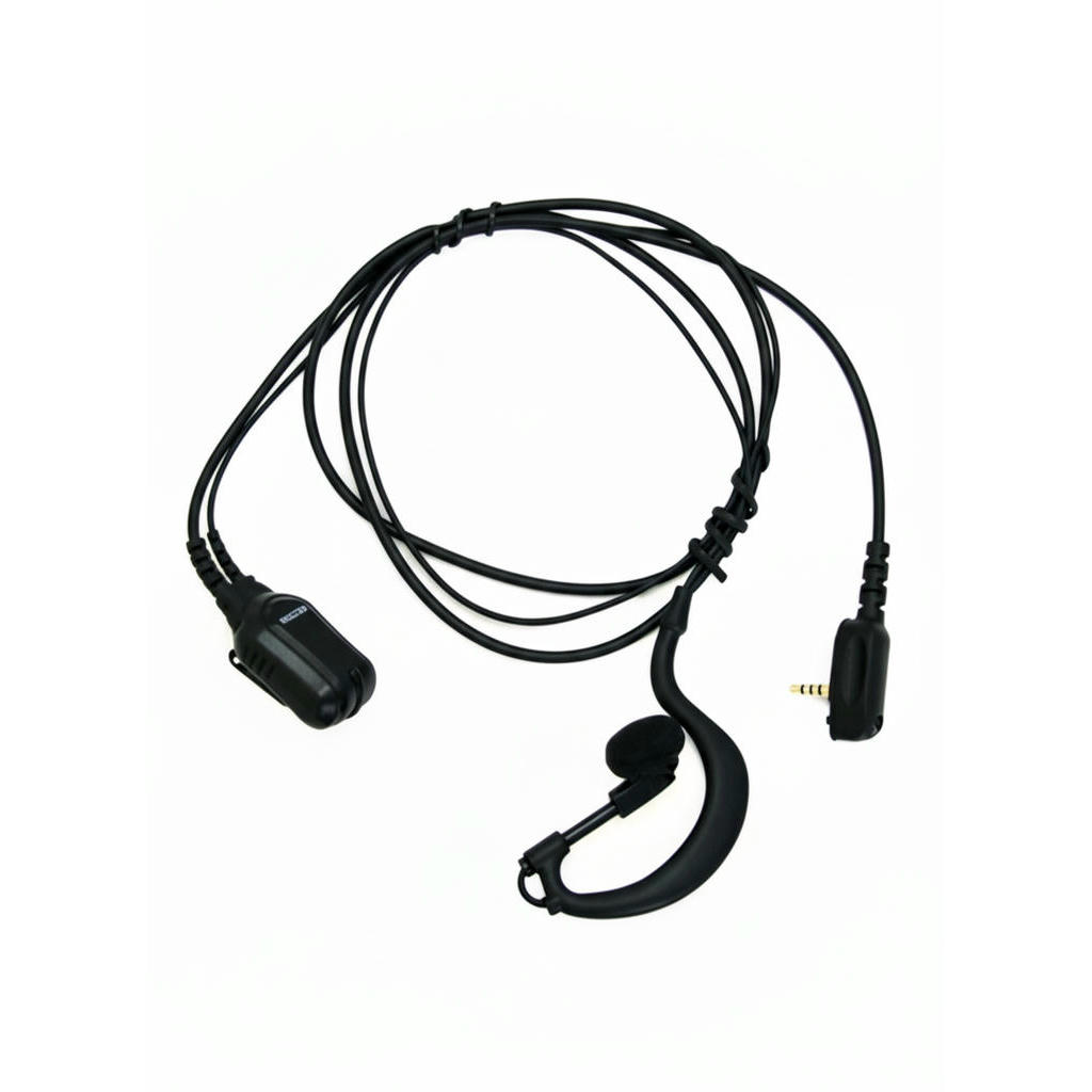 Двухпроводная конструкция: микрофон и клавиша PTT объединены в единый компактный блок. Заушное крепление с дополнительным изгибом обеспечивает надежную фиксацию в ухе.