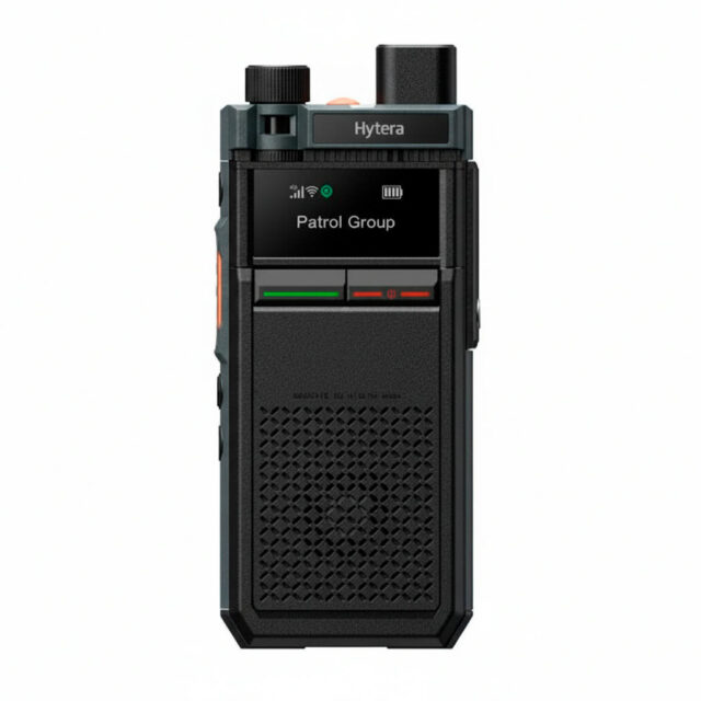 Носимая рация Hytera P50E портативное PoC-устройство радиосвязи, реализующая Push-to-Talk через сети LTE с акцентом на простоту управления и надёжность в условиях ежедневной полевой работы. Терминал функционирует под управлением Android 12 и оснащён минималистичным 0,96-дюймовым цветным LCD-дисплеем (160×80 пикселей), отображающим только критически важную информацию: активную группу, уровень сигнала и заряд аккумулятора. Поворотный регулятор переключения групп с голосовыми уведомлениями позволяет менять канал связи, не отрывая взгляда от задачи. Профессиональная антенна обеспечивает стабильное соединение в зонах со слабым сигналом, поддерживая бесперебойную диспетчерскую связь там, где стандартные решения теряют покрытие.
