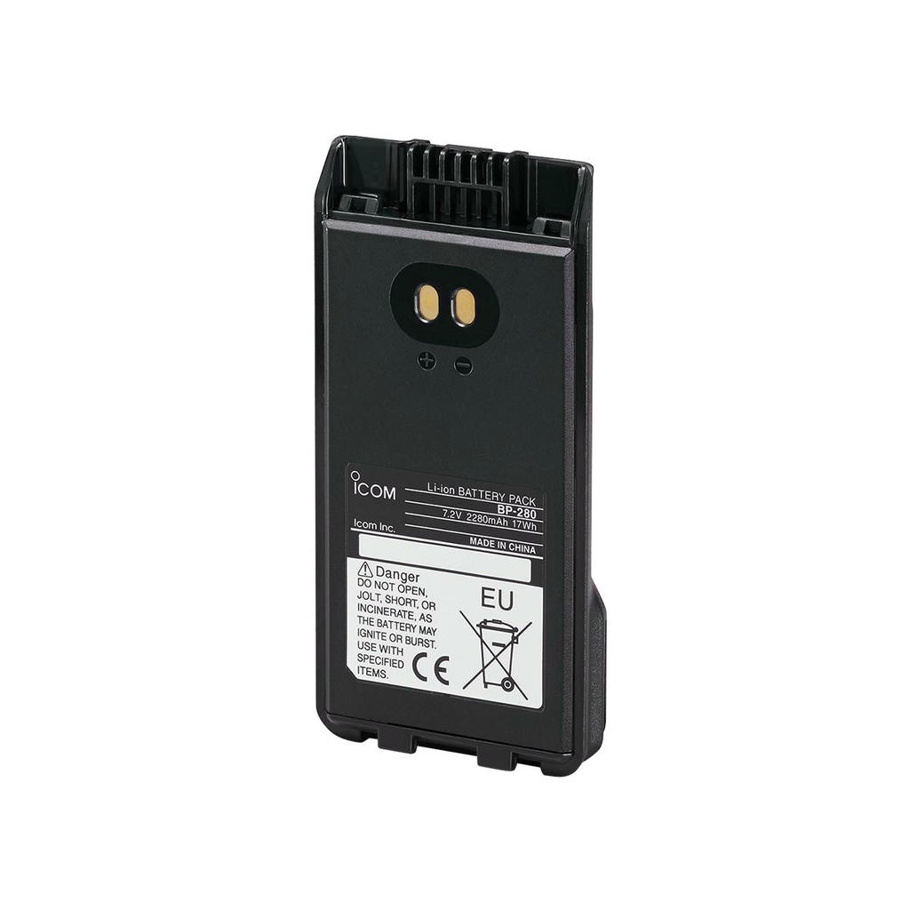 Модель ICOM BP-280 представляет собой литий-ионный источник питания напряжением 7.4В и ёмкостью 2400 мАч. Изделие предназначено для обеспечения энергией радиостанций Icom IC-F1000, IC-F2000.