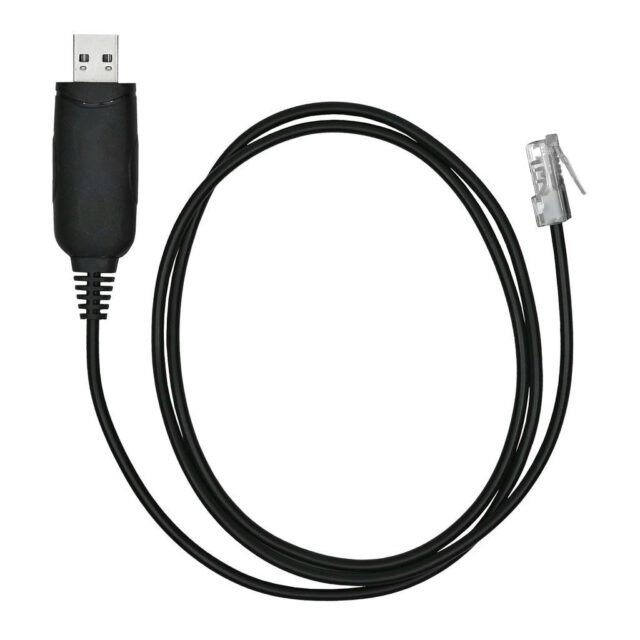 Специализированный кабель-программатор с интерфейсом USB, предназначенный для настройки и программирования автомобильных радиостанций Racio R3100 и R3200 через персональный компьютер. Подключается к сервисному разъёму RJ-45 радиостанции с одной стороны и к порту USB компьютера с другой.