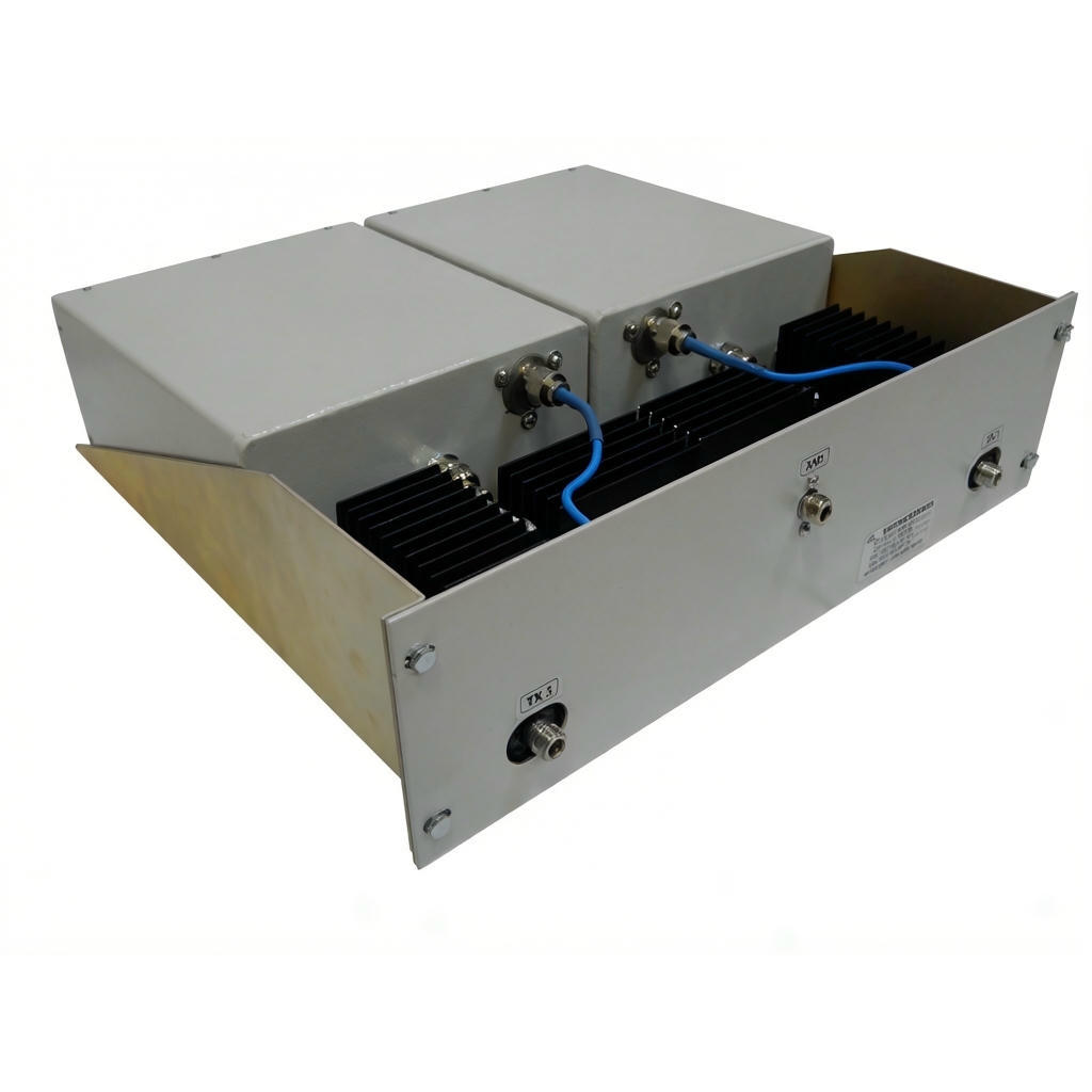 Высокая добротность коаксиальных резонаторов обеспечивает крутизну скатов АЧХ, позволяя объединять каналы с минимальным частотным разносом от 100 кГц. Комбайнер подходит для профессиональных объектов связи с высокой плотностью каналов, где важна электромагнитная совместимость и спектральная эффективность.