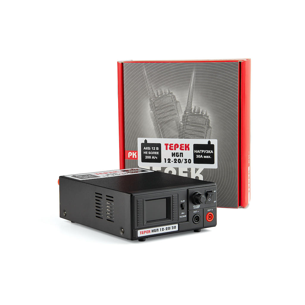 ИБП 12-20/30 обеспечивает стабилизированное выходное напряжение 13,8 В при постоянном токе нагрузки 25 А и кратковременном токе до 30 А. Три двухполярных выходных терминала допускают одновременное подключение нескольких единиц оборудования. Рекомендуемая ёмкость внешней аккумуляторной батареи — до 200 Ач. Диапазон рабочих температур составляет от −25 °C до +55 °C. Входное напряжение от 140 до 250 В обеспечивает работу при пониженном сетевом напряжении.