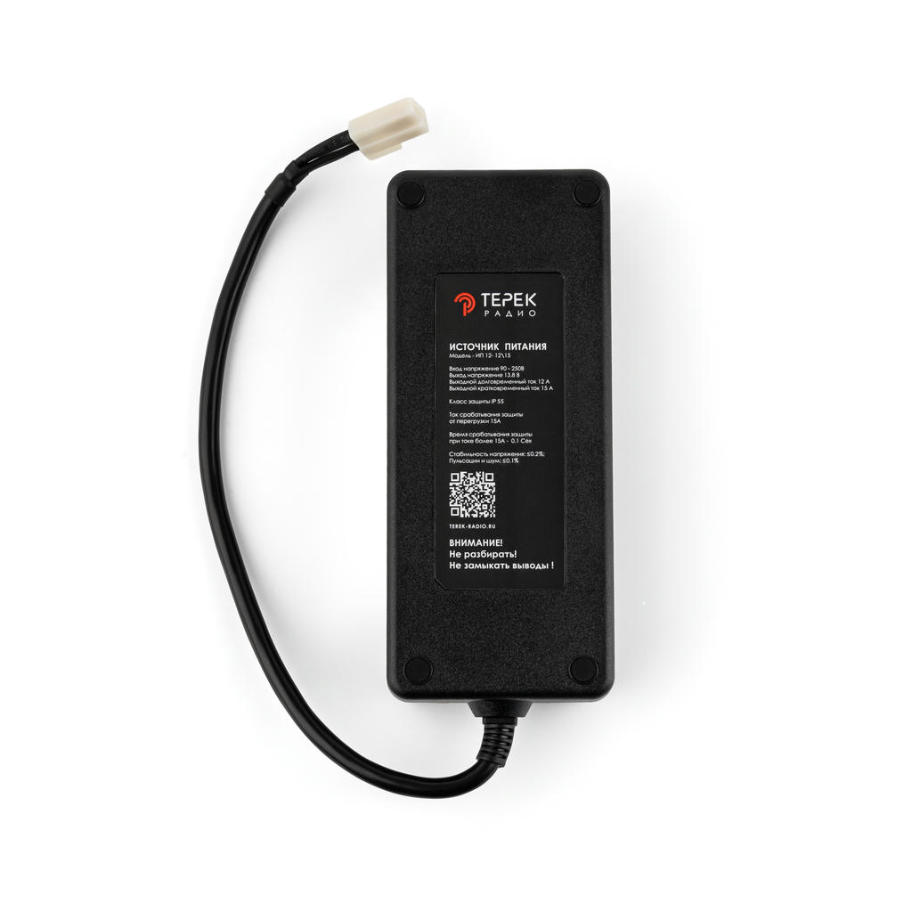 Стабилизированный блок питания Терек ИП 12-12-15, разработанный для стационарного и лабораторного питания автомобильных радиостанций с номинальным напряжением 13,8 В. Обеспечивает непрерывную работу радиооборудования от сети переменного тока 90–250 В, заменяя бортовую аккумуляторную батарею при стационарном размещении рации на рабочем месте.