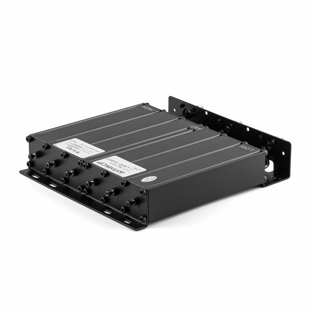 Мобильный дуплексер с шестью спиральными резонаторами режекторной схемы работает в диапазоне 455–465 МГц с частотным разносом 8–13 МГц. Создан для организации полнодуплексного режима работы мобильных ретрансляторов в системах профессиональной связи UHF диапазона.