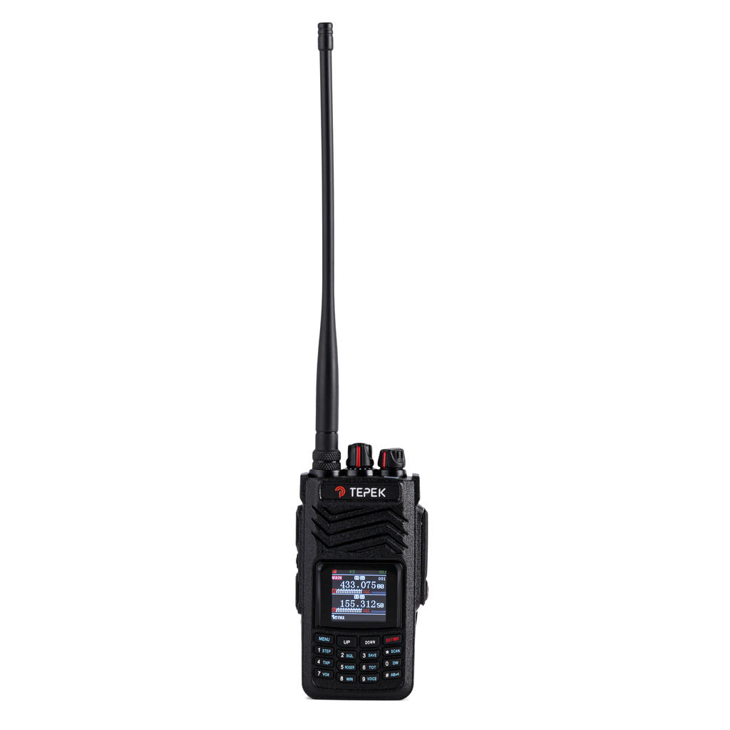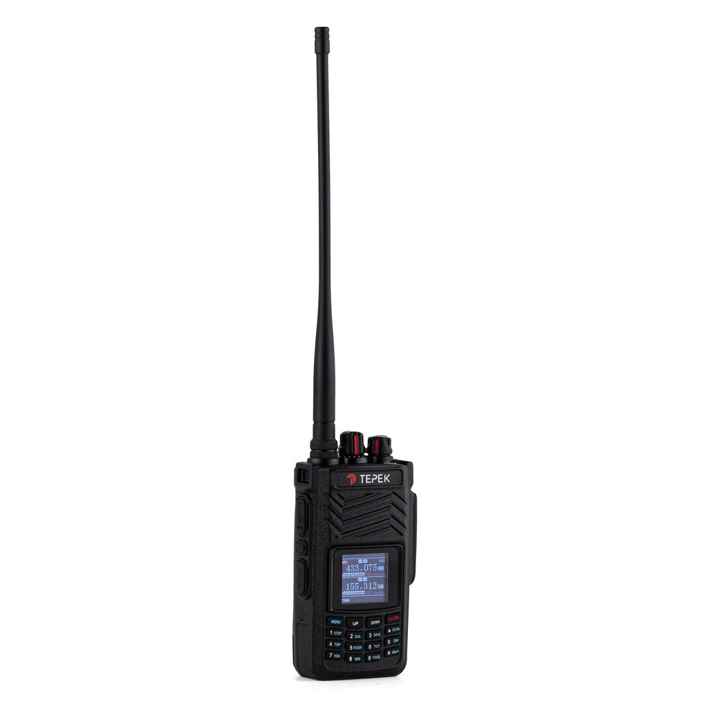 Двухдиапазонная портативная радиостанция Терек РК-322-2Д работает в диапазонах VHF (136–174 МГц) и UHF (400–480 МГц), что позволяет оперативно взаимодействовать с абонентами, использующими разные частотные диапазоны. Передатчик обеспечивает выходную мощность 10 Вт с тремя программируемыми уровнями: LOW (0.01–3 Вт), MIDDLE (1.5–6 Вт) и HIGH (3–10 Вт), что даёт возможность адаптировать дальность связи (до 15 км в открытой местности) под конкретные условия и экономить заряд аккумулятора при работе на коротких расстояниях. Приёмник с чувствительностью 0.18 мкВ (12 дБ SINAD) и избирательностью по соседнему каналу 55 дБ (при 12.5 кГц) и 68 дБ (при 20 кГц) обеспечивает уверенный приём слабых сигналов и высокую помехоустойчивость даже в условиях плотного радиоэфира. Радиостанция поддерживает 130 каналов памяти, а также кодирование CTCSS, DCS и DTMF для фильтрации посторонних переговоров и организации селективных вызовов. Встроенный скремблер (частотная инверсия) защищает переговоры от несанкционированного прослушивания. Функция кросс-бенд ретранслятора позволяет использовать радиостанцию в качестве переносного ретранслятора между диапазонами VHF и UHF, расширяя зону покрытия радиосети. Две отдельные клавиши PTT (по одной на каждый диапазон) обеспечивают мгновенный выход на передачу в нужном диапазоне без предварительного выбора активного канала.