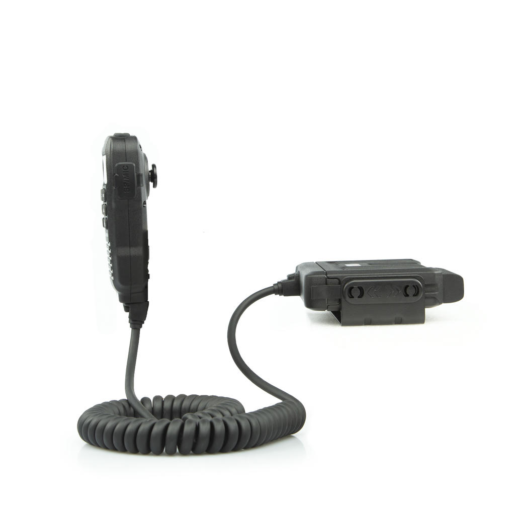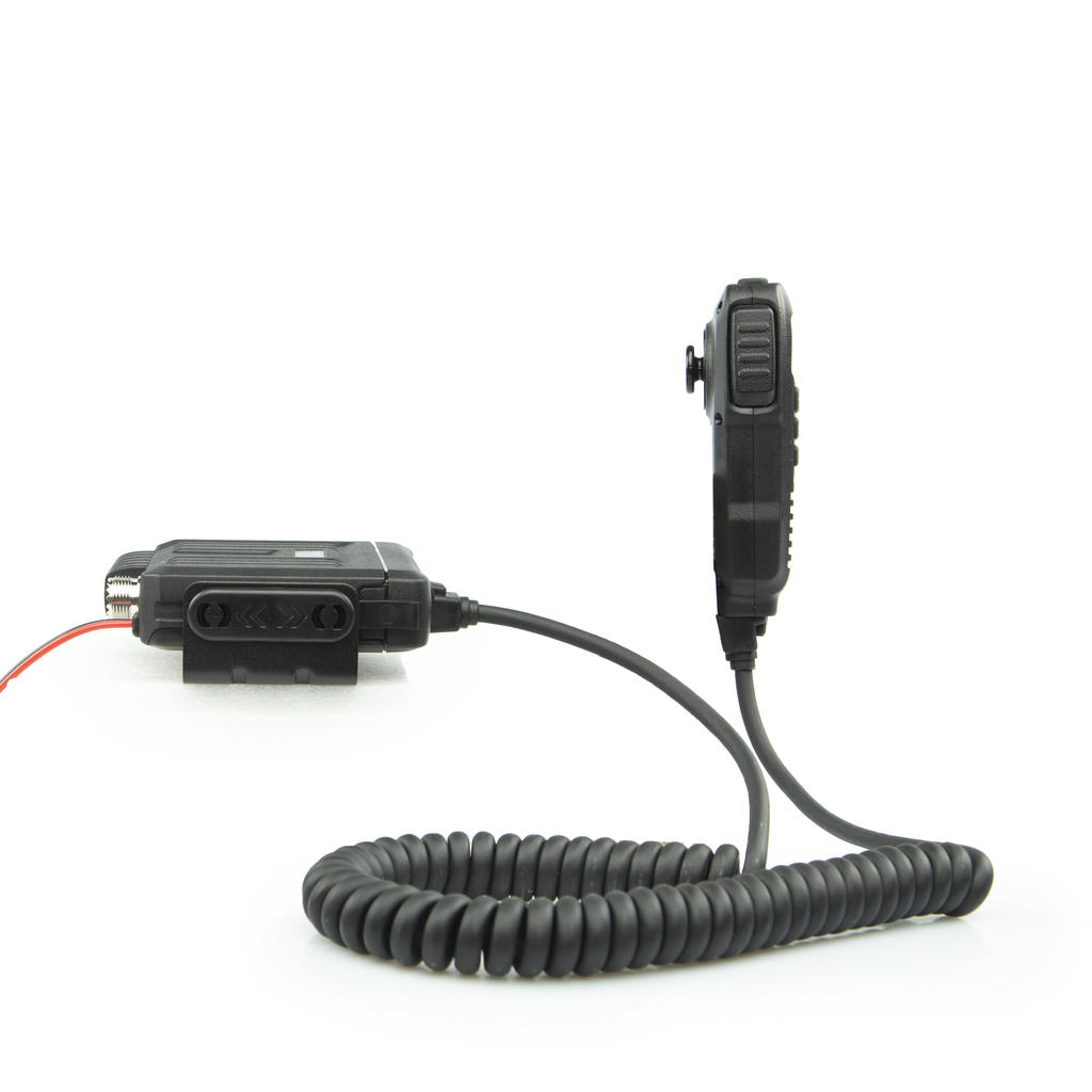 - Разнесённый форм‑фактор с выносной панелью управления (тангента с дисплеем, динамиком и микрофоном) позволяет скрыть основной блок радиостанции в салоне автомобиля, оставив на виду только компактное переговорное устройство