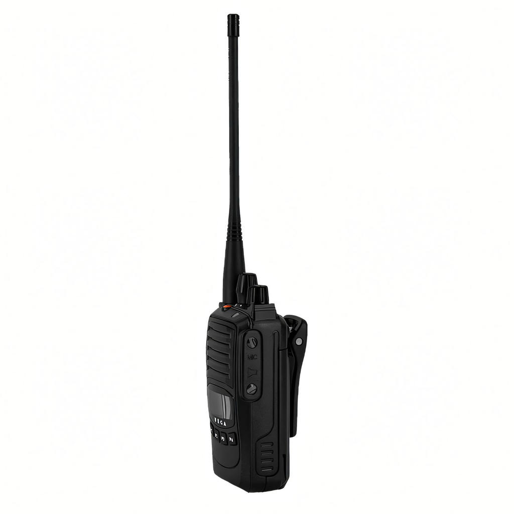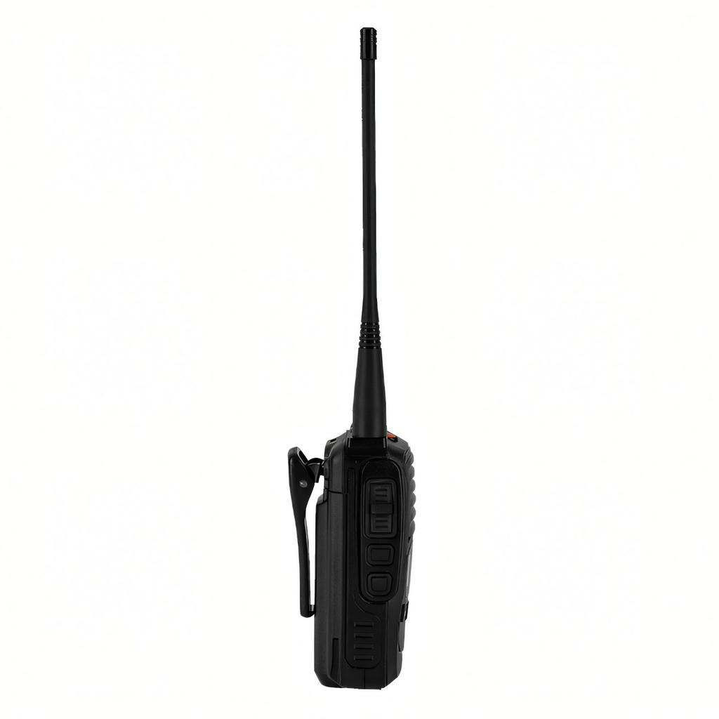 Корпус радиостанции соответствует военному стандарту США MIL STD 810C/D/E и имеет степень защиты IEC529 IP67, что гарантирует полную защиту от пыли и кратковременного погружения в воду на глубину до одного метра. Гибкая навинчивающаяся антенна армирована пластиком и обеспечивает максимальную эффективность в речном диапазоне. Жидкокристаллический дисплей с подсветкой позволяет использовать радиостанцию в темное время суток. Аккумулятор Li-Ion емкостью 2600 мАч обеспечивает продолжительную автономную работу.